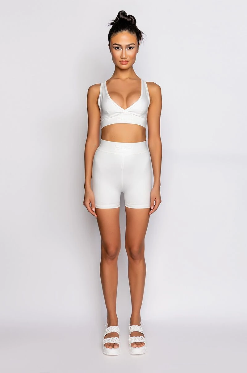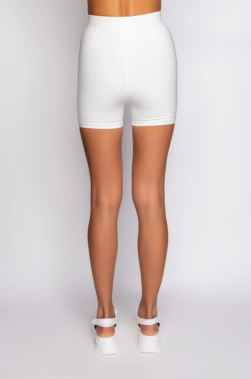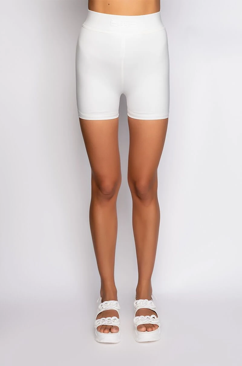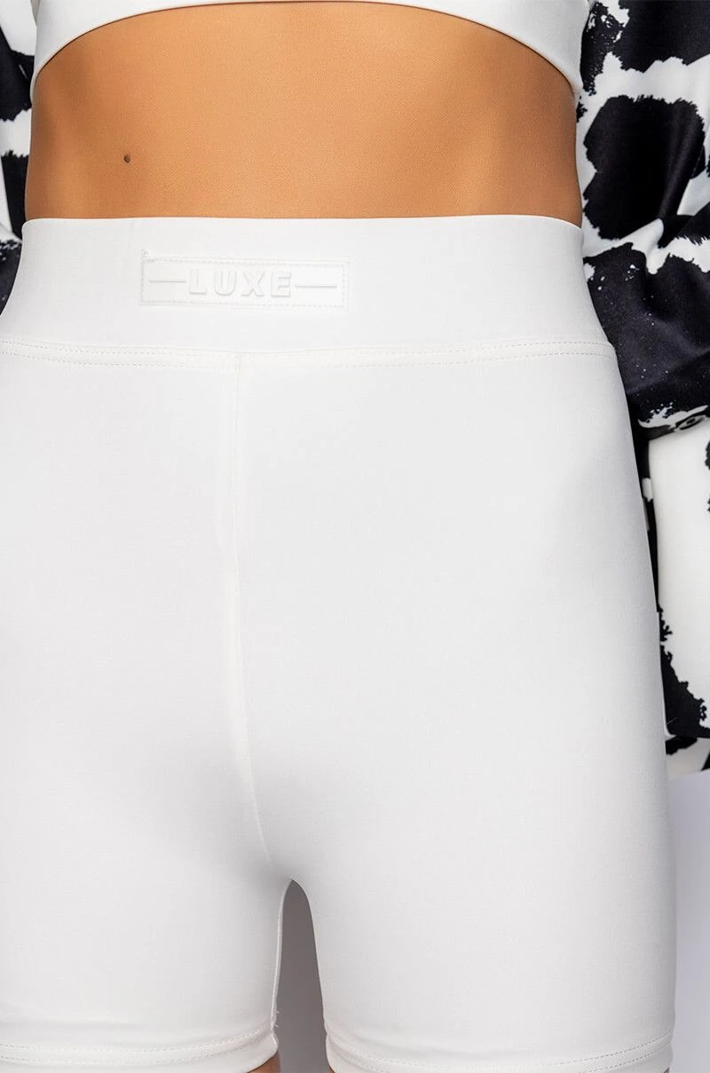 The AKIRA Label Basic Luxe White Biker Short features a sleek and smooth fabrication, a high rise elastic waistband, a rubber logo reading “Luxe,” and a bodycon fit. Pair this piece with the coordinating Basic Luxe White Bralette and some chunky sneakers to complete your look.