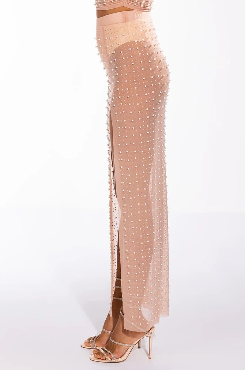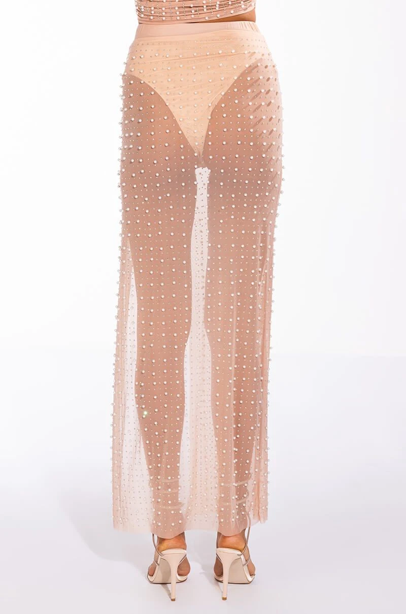 The AKIRA Label Disco Doll Embellished High Slit Mesh Maxi Skirt is made from a sheer mesh fabrication and features a high rise waist with a wide elastic waistband, a maxi length silhouette, a sexy high side slit, and cheeky inner panties with a gusset closure. Pair this glimmering piece with the coordinating AKIRA Label Disco Doll Embellished One Shoulder Mesh Crop Top to finish off your dance floor-worthy look!