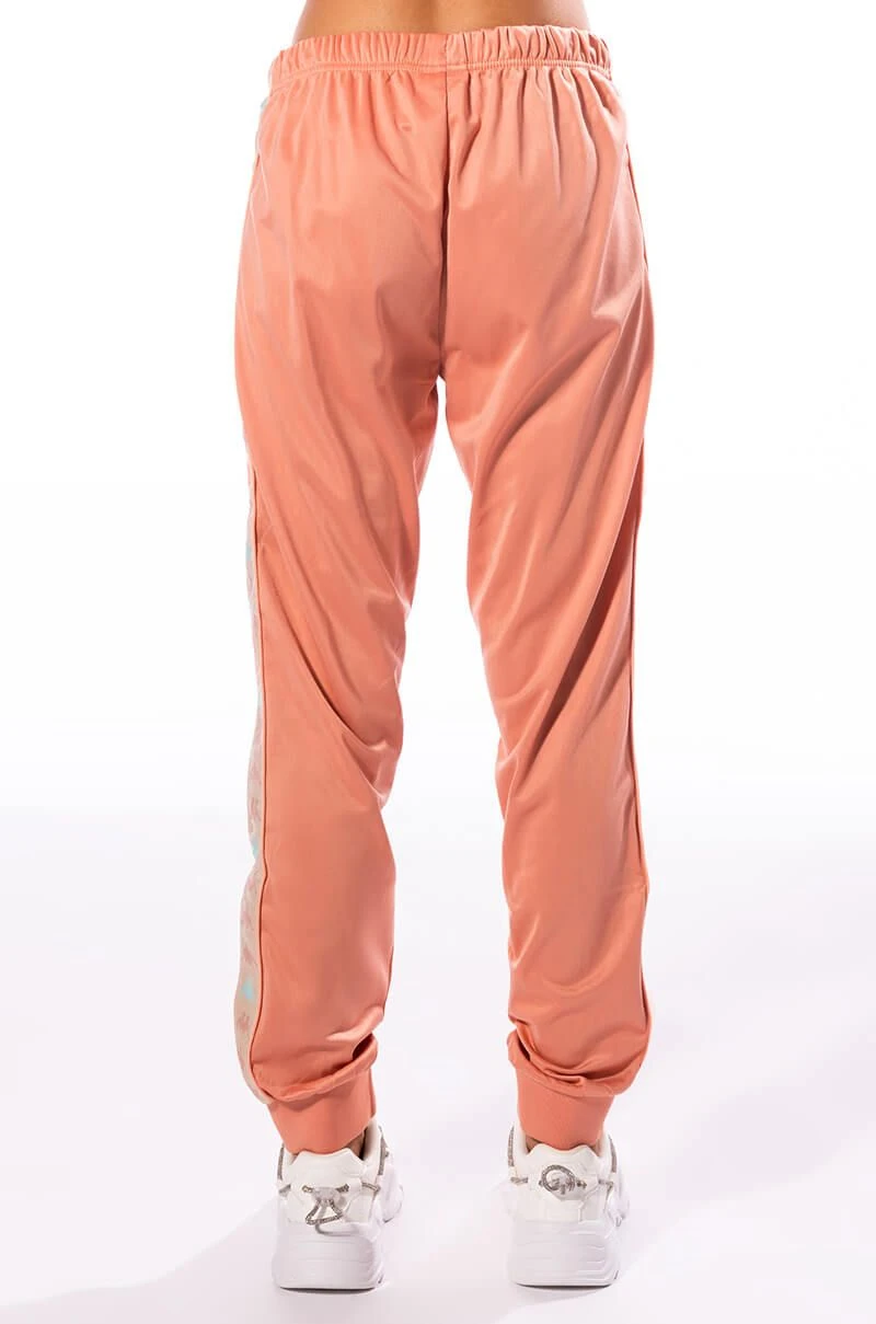 The KAPPA Side Trim Jogger is made from a soft and shiny fabrication and is complete with a front logo patch, branded side stripes, two pockets, an elastic waistband, and ribbed elastic ankle details. Pair this piece with the KAPPA Cropped Zip Front Hoodie, the KAPPA Cut Out Printed Band Sports Bra, or the KAPPA Cutout Legging With Printed Waistband for a full-on graphic look.