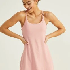 This fit and flare athletic dress is so comfortable and versatile, featuring a key hole back detail and scoop neck style. The fabric is ultra-breathable with a built-in sports bra and fitted shorts underneath for security!