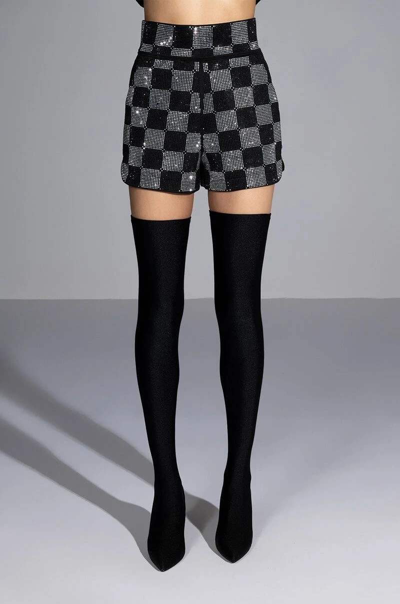 Get your choreo ready, it’s time to put on a show in The AKIRA Label Pop Star Checkered Rhinestone Short. This rhinestone-embellished dolphin shorts features a high rise waistline, rhinestone checkered patterning throughout, slant side pockets, and a hot pant silhouette. Complete your look with The Pop Star Checkered Rhinestone Blazer.