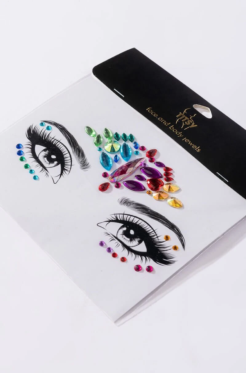 Love is love. Celebrate in style with The Titsy Pride Gem Liner. These glamorous adhesive-back strips frame the lower lash line and outer corners of the eye. Complete with a large rainbow centerpiece.